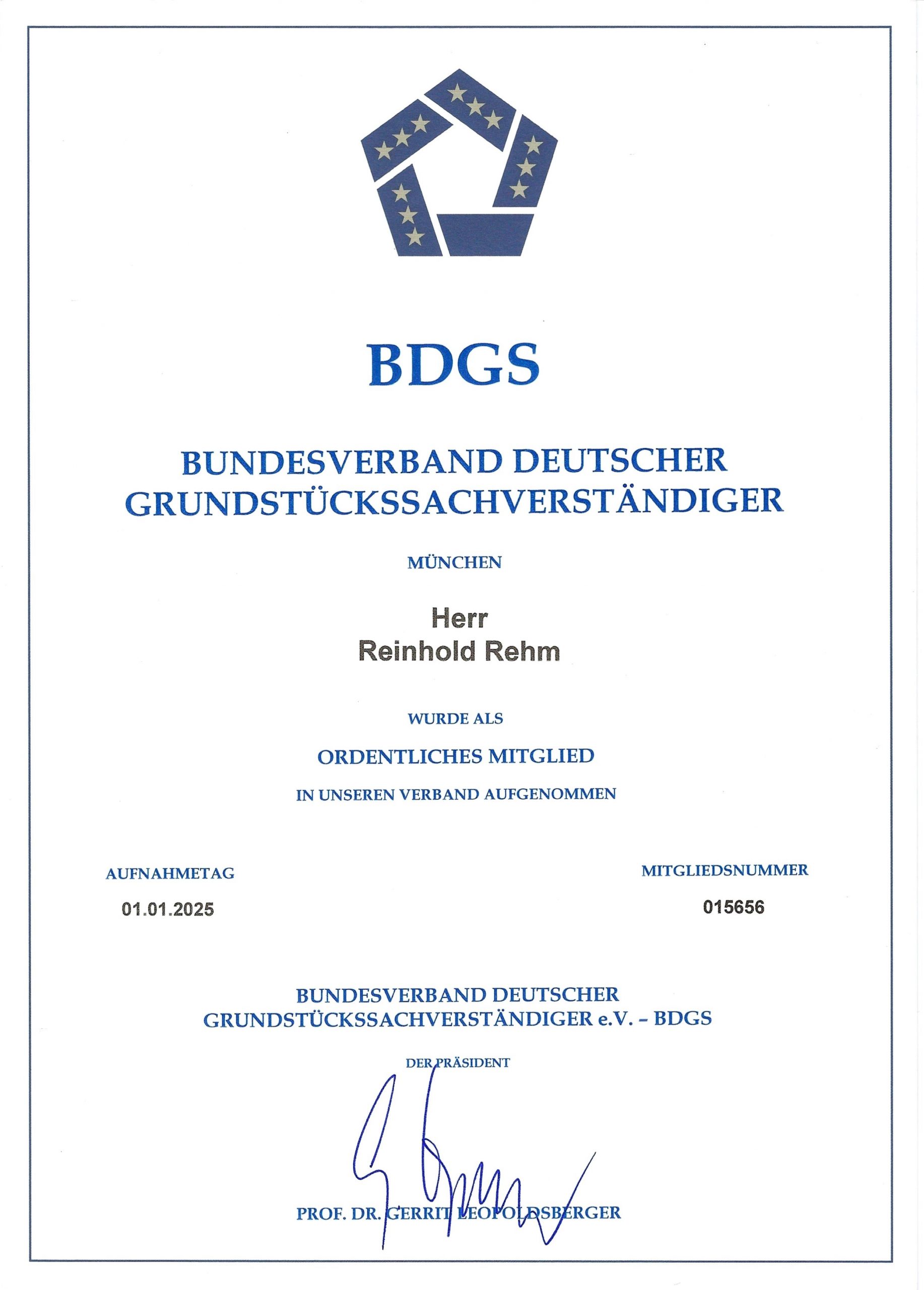 Reinhold Rehm hat beim TÜV Rheinland Weiterbildungen zum Immobilienwertermittler sowie zum Sachverständigen für Immobilienwertermittlung abgeschlossen. Zusätzlich ist er von der IHK als geprüfter Immobilienmakler zertifiziert und Mitglied im Bundesverband deutscher Grundstückssachverständiger. Alle entsprechenden Nachweise und Zertifikate finden Sie rechts im Überblick.
